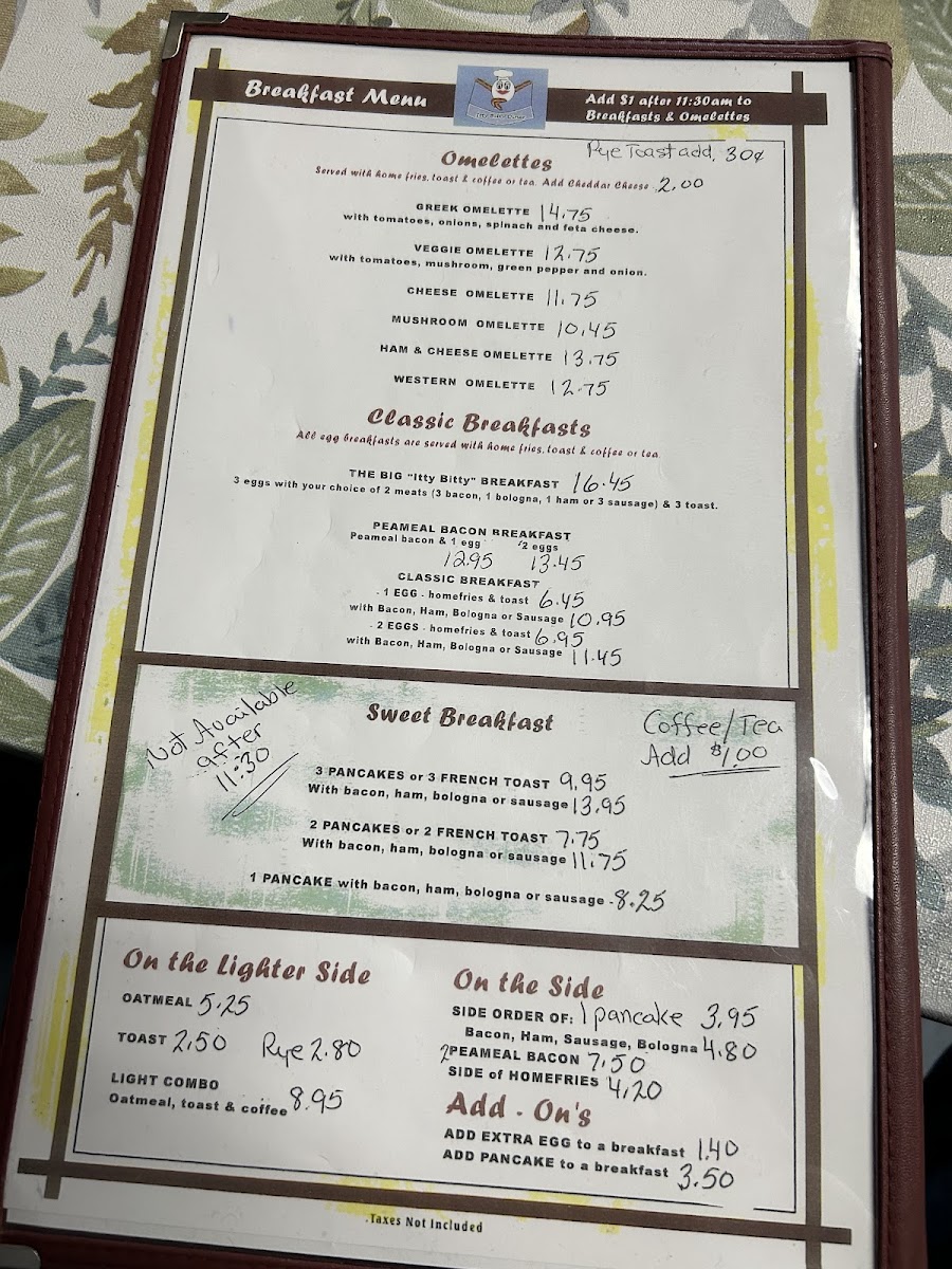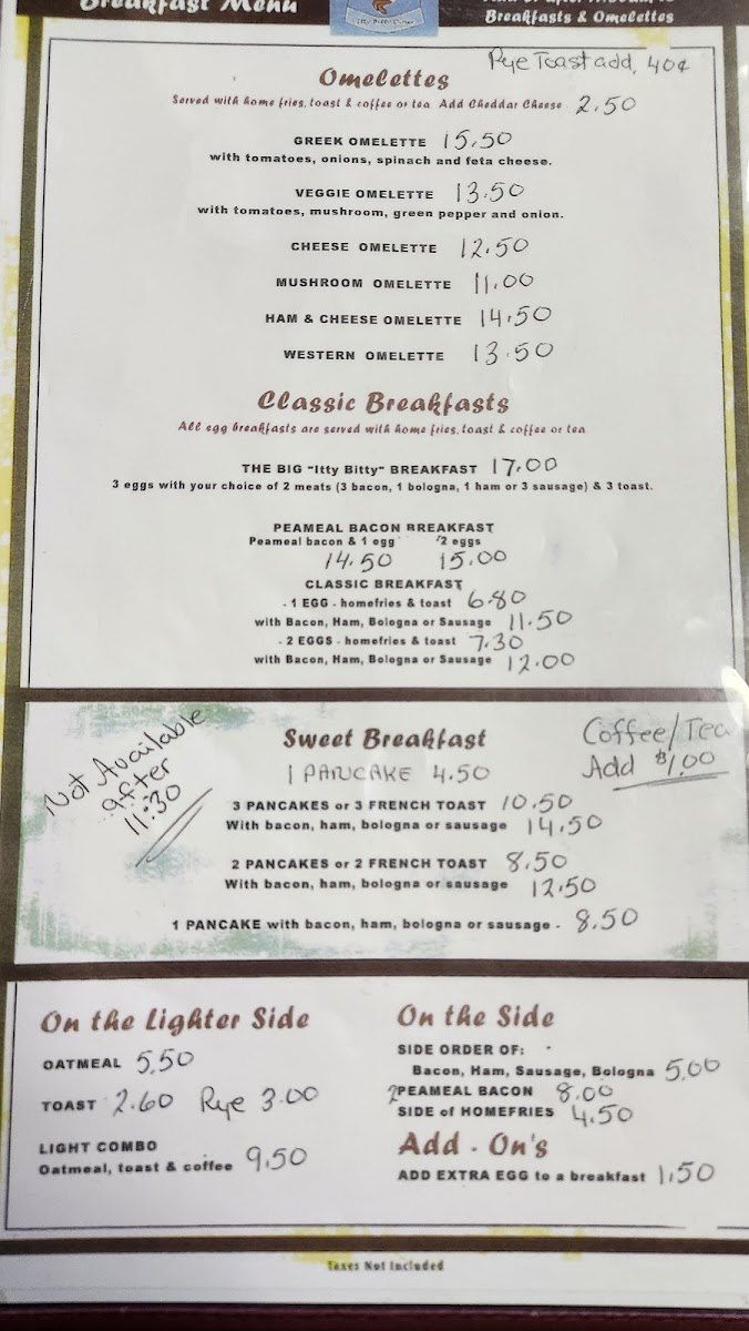 Welcome to Itty Bitty Diner, a charming breakfast spot nestled in Napanee, Ontario. Here, the aroma of home-cooked deliciousness greets you as soon as you step in. The diner offers an array of classic breakfasts, such as the Big "Itty Bitty" Breakfast and the delightful Peameal Bacon Breakfast, both served with generous portions that ensure satisfaction. Guests rave about the fluffy Western omelette and melt-in-your-mouth sausages, affirming the diner's commitment to quality.